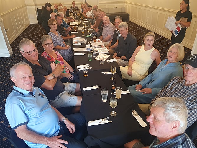 Within a short time, we were at a large table surrounded by fellow members and special guests of members, keen to enjoy the day. I was proud to introduce John Parker to our members there, as John was holidaying with Ann & I at home in Papamoa. He and I had been work colleagues at both MB Australia and here in NZ at MBNZ, when we were both in senior roles in the truck sales division of the distributor. We have been good friends for more than 45 years.