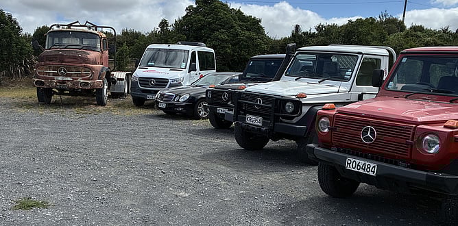 Following lunch, we proceeded to Howard Transport Ltd. in Tuakau, where NZ’s most knowledgeable MB truck man, Stuart Howard, welcomed us all to his “Man Cave”. Stuart’s knowledge of MB truck product started many years age when his Poppa, Robin owned R.W. Howard Transport in Tuakau and had many model 1418 MB trucks in their rural operation. This company was then to become Terrence Howard Transport, Stuart’s Dad, and although still involved, Terrence has stepped back to let Stuart and his brother Patrick run the company.